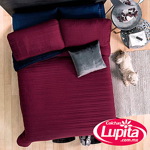 El tinto es un color sofisticado y muy favorecedor en combinación con el azul marino. Este diseño cuenta además con un capitonado que genera un efecto corrugado. Edredón de microfibra, textura viasoft súper suave y capitonado minimalista a rayas.