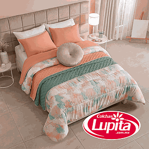 1 Cojín decorativo 0.30 x 0.30 m|1 Cubrecama 2.90 x 1.15 m|1 Edredón 2.90 x 2.35 m|2 Funda de almohada 0.94 x 0.47 m