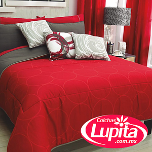 Edredón inspirado en el espíritu urbano de las grandes ciudades. Este diseño le dará un toque gráfico a tu recámara, se imprimieron texturas sobre las franjas de color rojo y gris, que junto con su segunda vista brindarán un look contemporáneo a tu decoración. Juego de edredón doble vista.